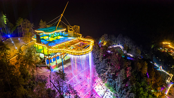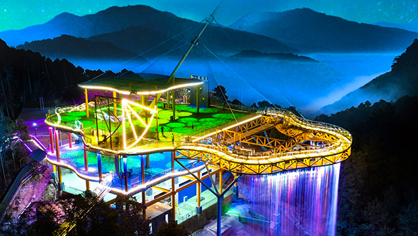集光影聲效、廊橋水瀑、高空游樂于一體 以“云”元素打造的獨特游樂綜合項目
